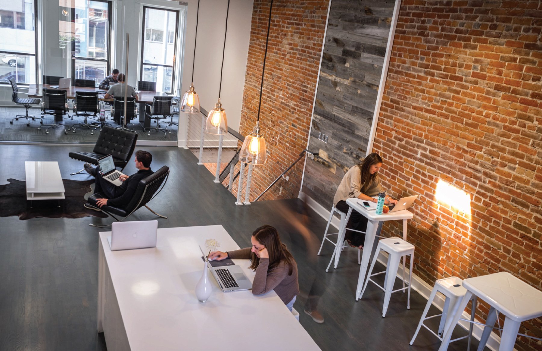 Featured in Modern in Denver magazine, this renovation was a combination of two offices into one three story space for a creative advertising agency. The concept was to provide various workspaces on each level where employees can work independently or collaboratively in a simple functional environment, while still having the amenities of a work from home environment.