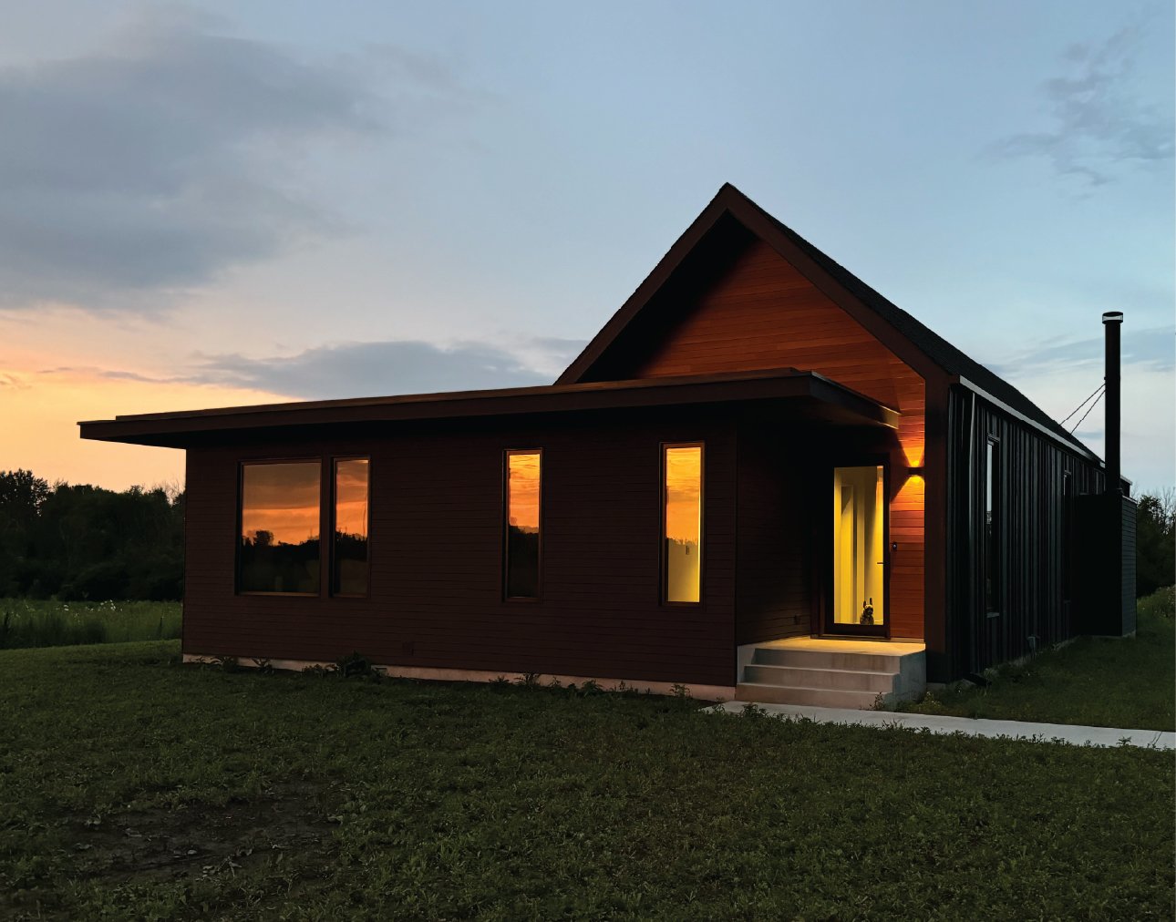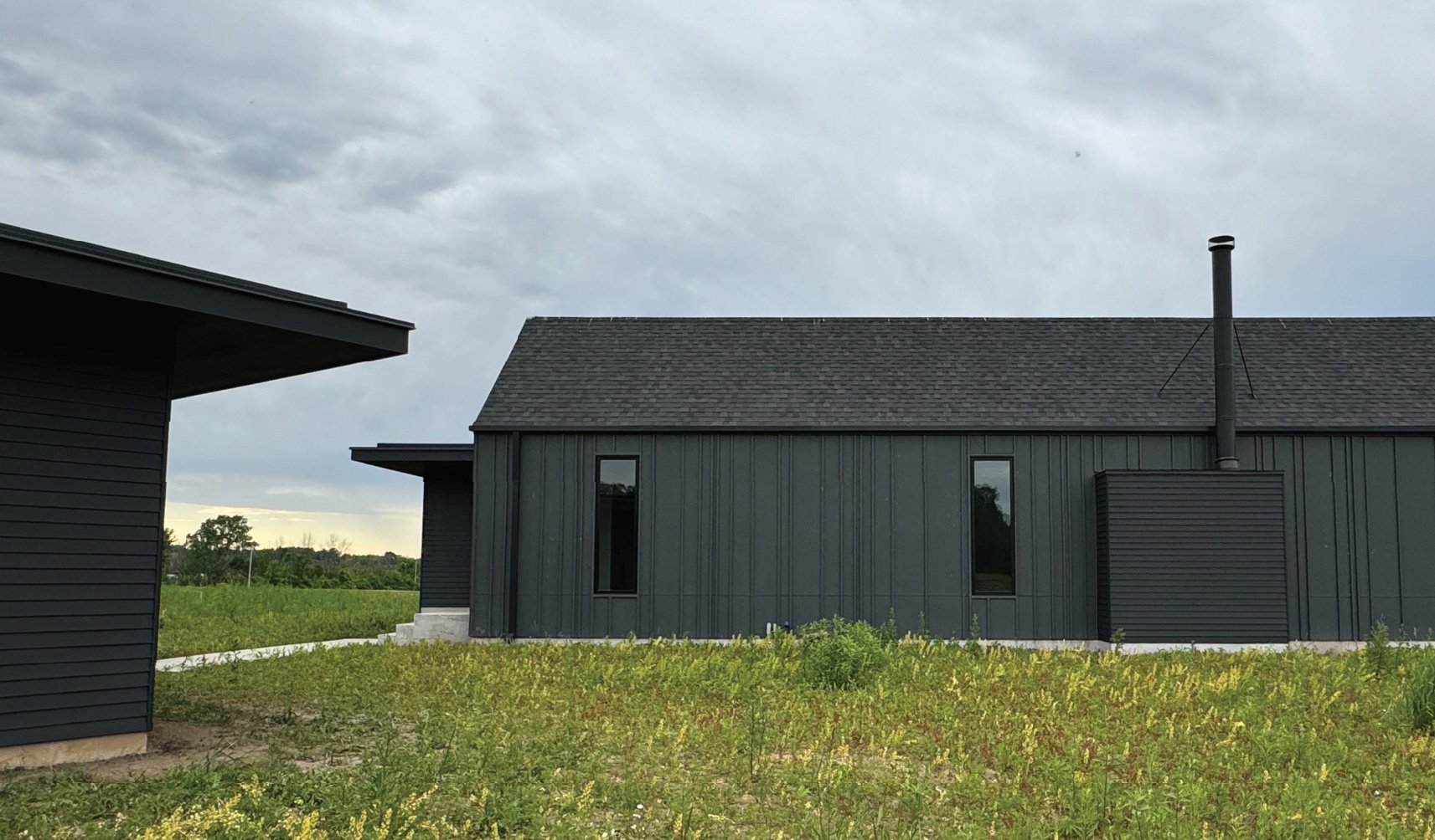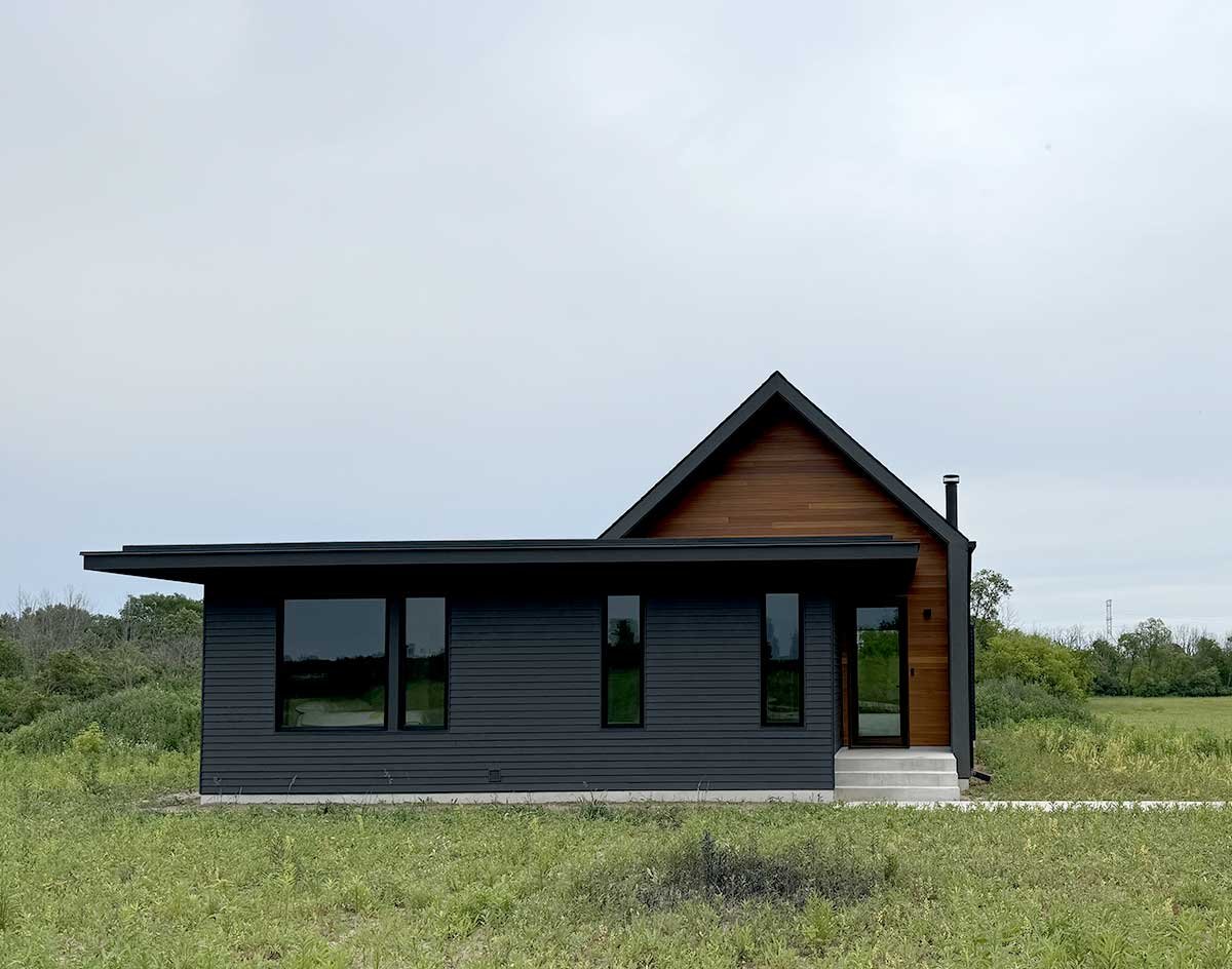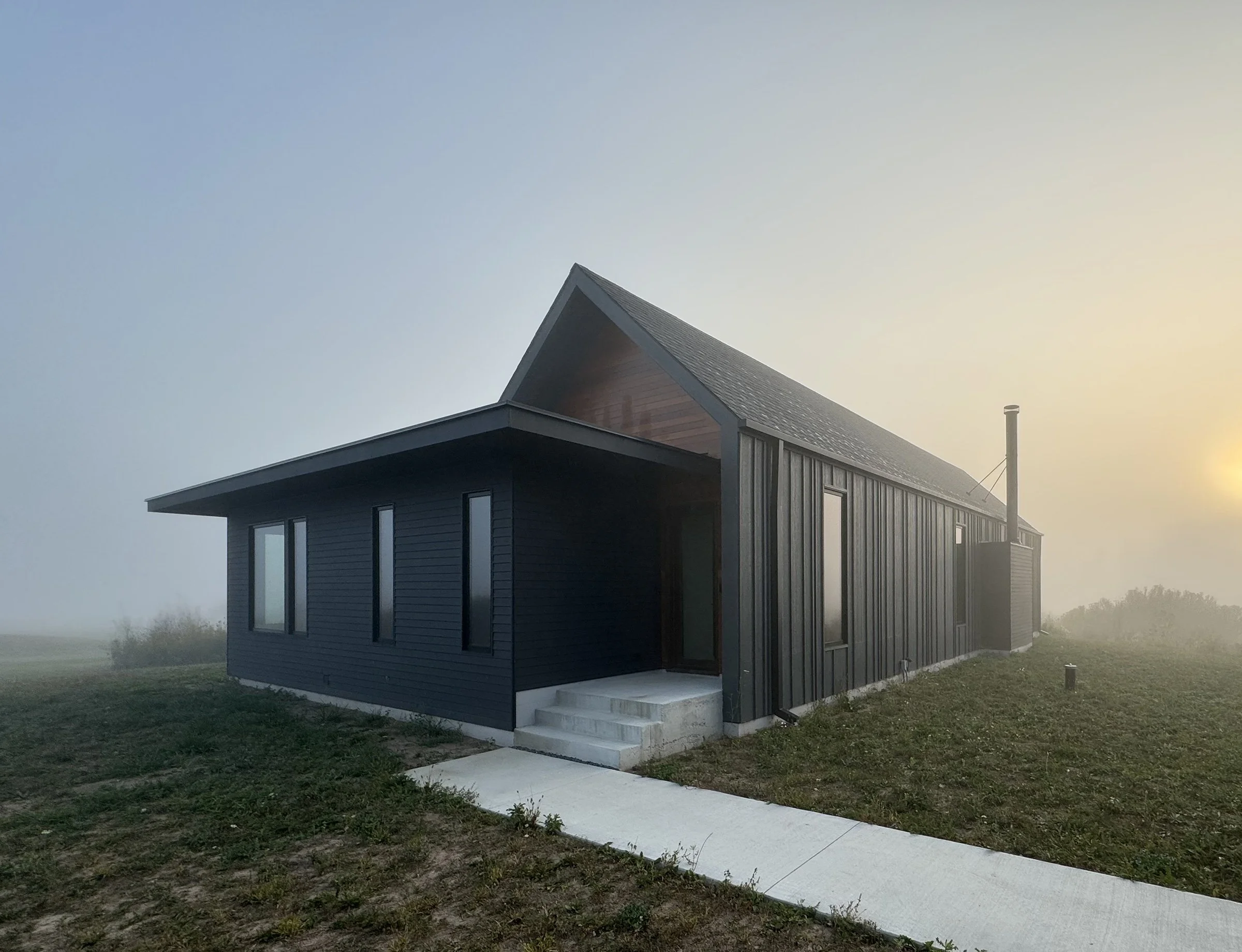 Based on the core principles of Scandinavian architecture theory, the compact efficient use of space minimizes its impact on the landscape. Clean lines, simple forms, with dark colors and natural wood on the exterior make it blend into the surrounding landscape. The concept is to appear small from the approach, while entering the home opens in space and view to the woods, and nature beyond. Simple elegant details while using a juxtaposition of raw and refined materials work cohesively together to compliment the architecture.